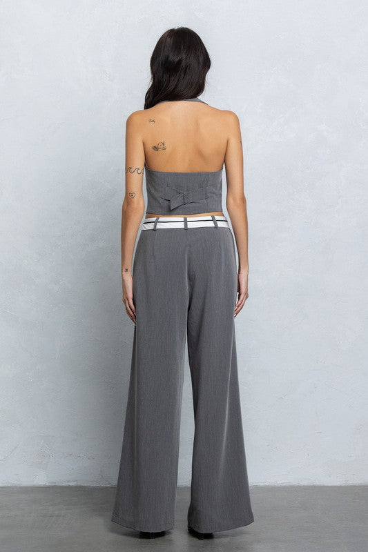 "Effortlessly elevate your style with our Boss Lady set. This dressy and fashion-forward ensemble features stylish pants and a matching vest, both in a sleek gray color. The perfect combination of comfort and sophistication, this set is a must-have addition to any wardrobe."