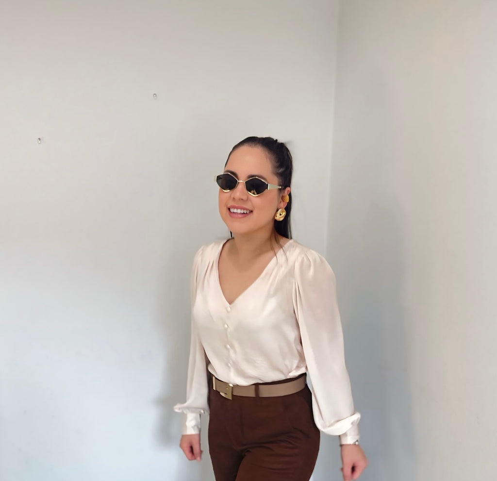Elevate your wardrobe with the Mortie Blouse. Made of luxurious silk and satin, it exudes elegance and beauty. The button details add a touch of sophistication to this shining piece. Upgrade your style and make a statement with this expertly crafted blouse.